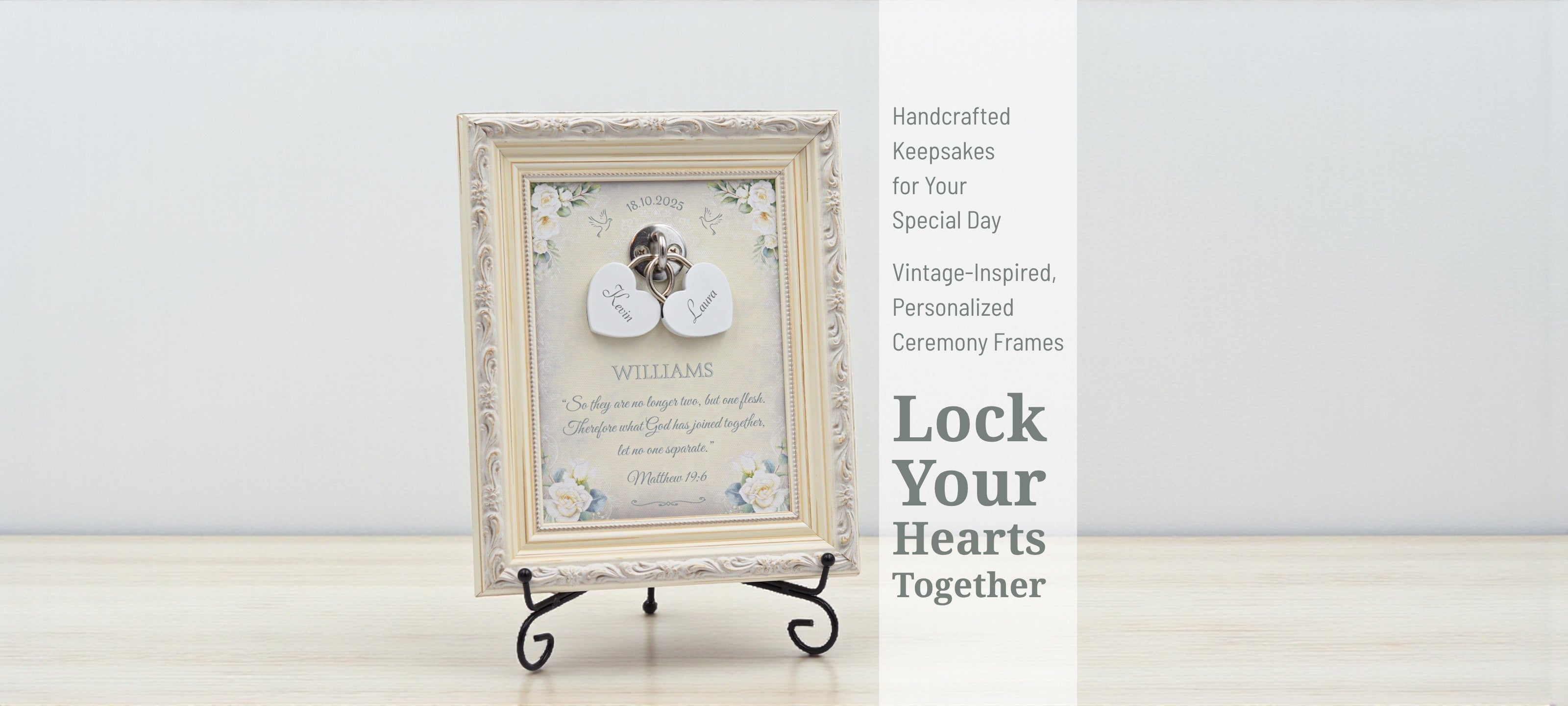 Unity Wedding Lock Ceremony Set – Vintage Personalized Keepsake Frame (Cream Classic)