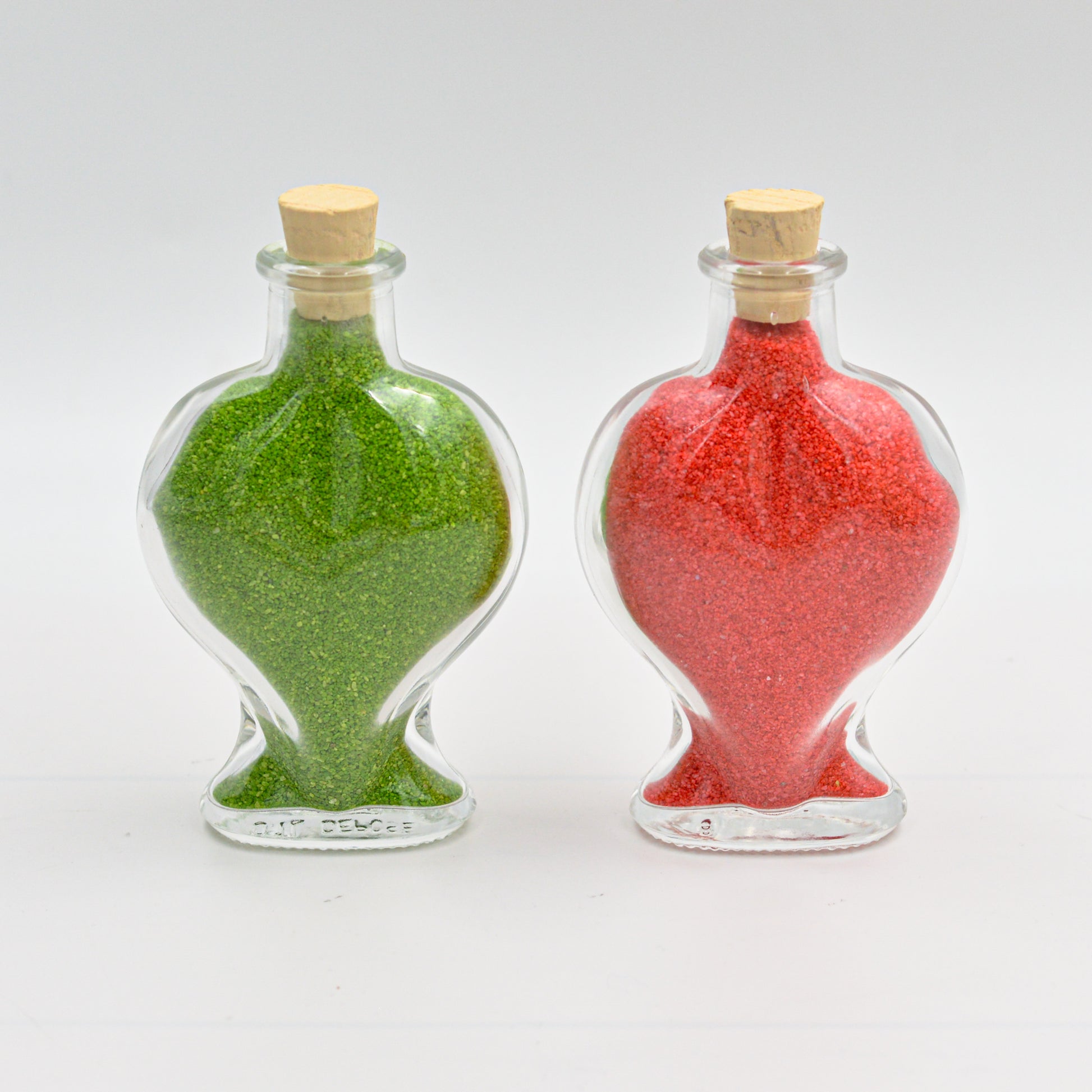 - 2 × 120 g colored sands in heart-shaped glass bottles