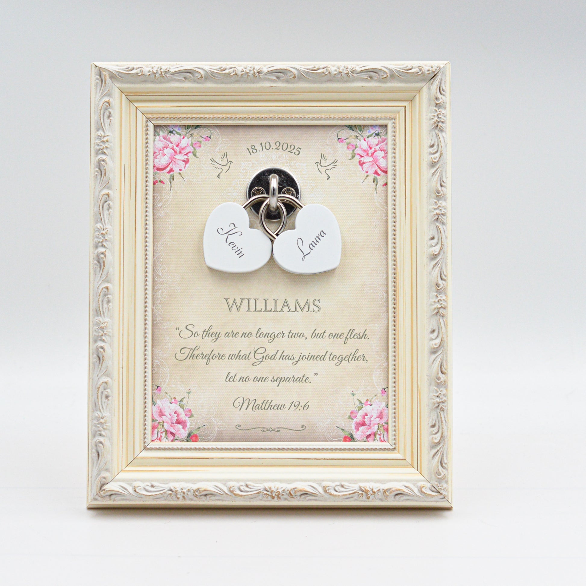 Unity Wedding Lock Ceremony Set – Vintage Personalized Keepsake Frame (Pink Roses)