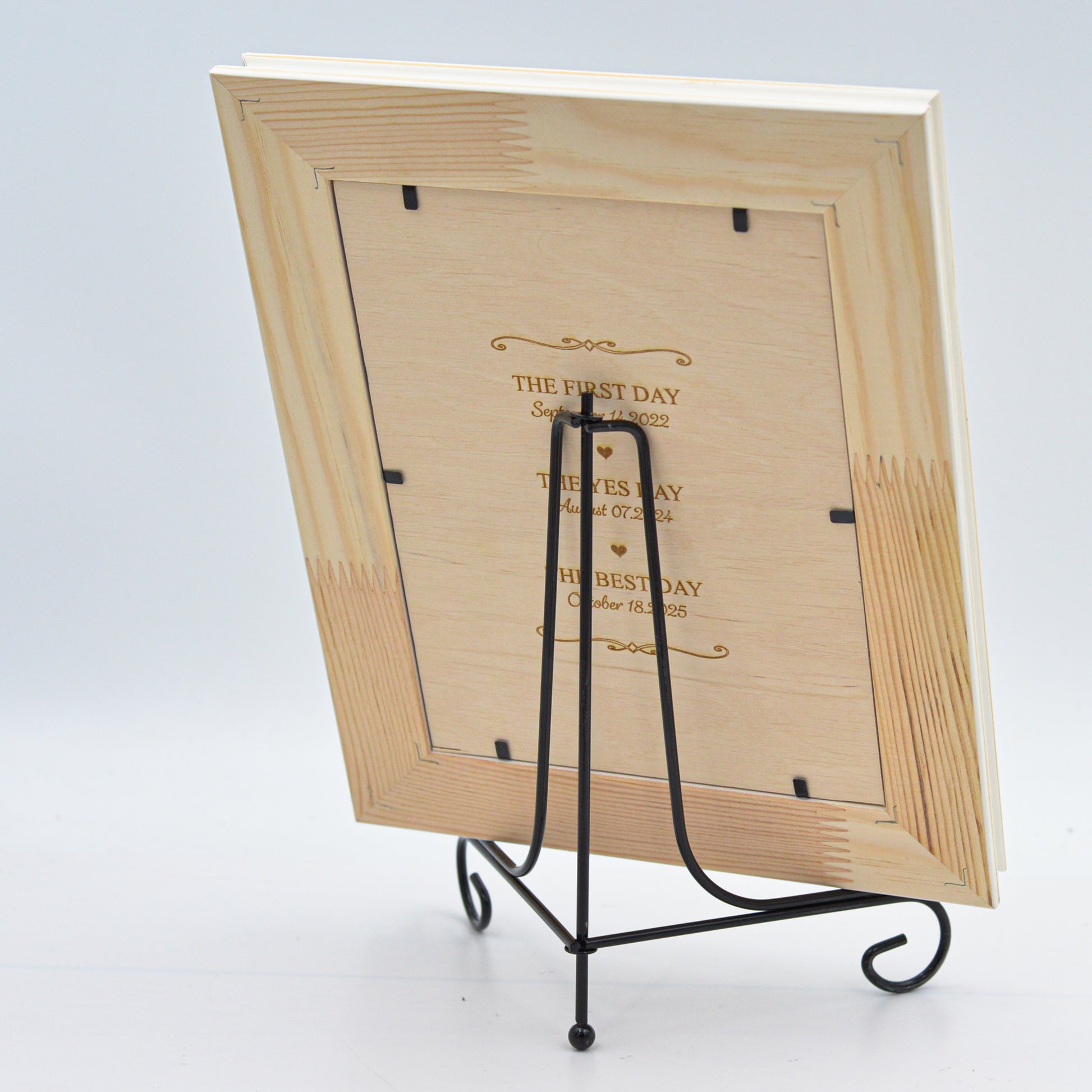 The set includes a sturdy black metal stand, allowing you to display your frame elegantly at your ceremony, on your wedding table, or later in your home as a cherished reminder of your promise.